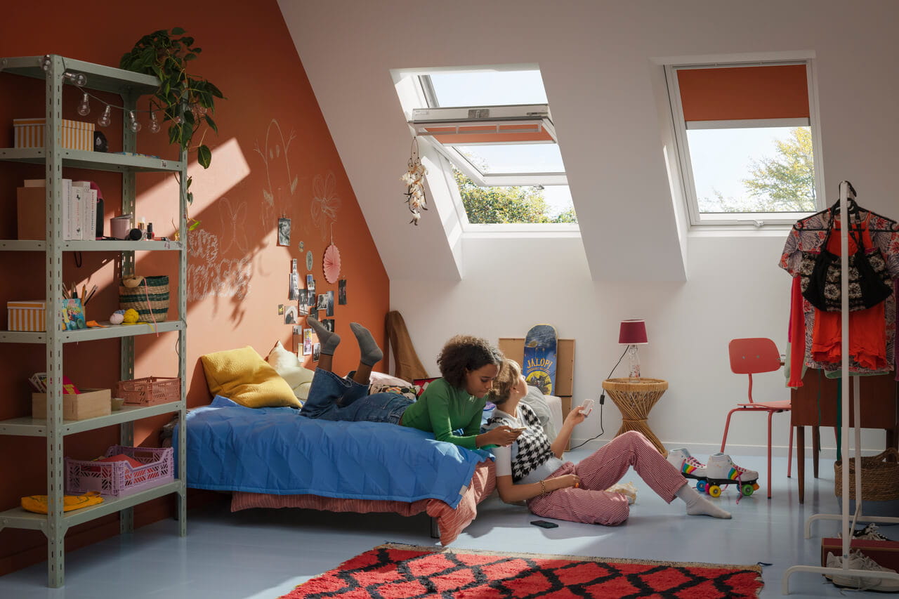Para obtener los mejores resultados, combina las cortinas con otros accesorios VELUX: en una habitación pequeña, por ejemplo, combina una cortina interior de oscurecimiento con una persiana que bloquee el calor, y añade una mosquitera para que tus hijos duerman tranquilos durante el día y la noche, sin preocuparte por el calor y los insectos.