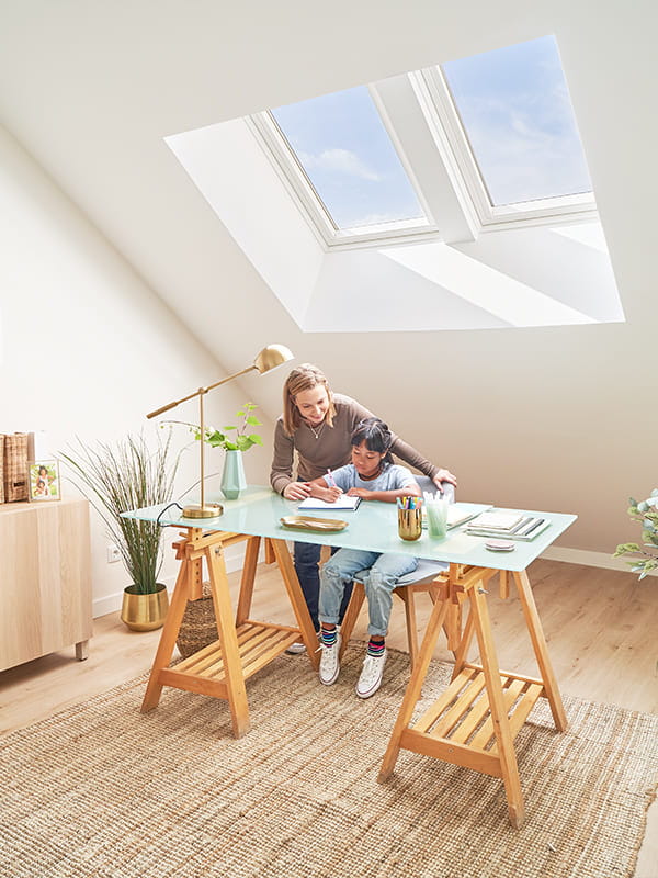 Tanto si tienes experiencia como trabajador remoto como si estás comenzando a adentrarte en este modo de vida, es viable incrementar tu concentración y productividad en tu espacio de trabajo en casa al integrar luz natural y aire fresco. Las ventanas de tejado VELUX son la mejor manera de aumentar la luz natural en tu oficina en casa.
